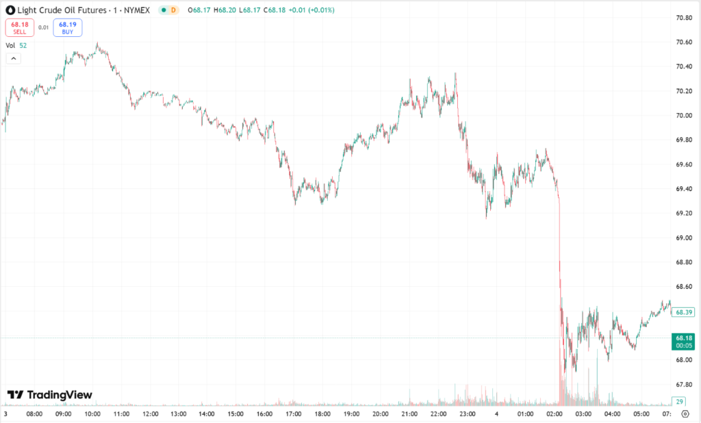 On Monday, crude oil saw a brief rally to $70.6 before facing strong resistance and reversing downward, closing lower for the session.