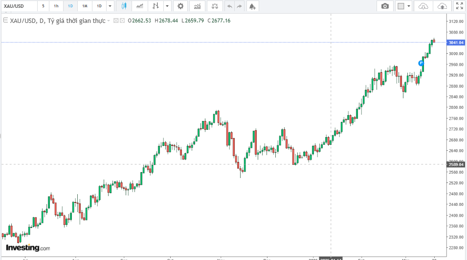 - Gold (XAU/USD) soared to a new record high of $3,046.87, reinforcing its role as a safe-haven asset amid economic uncertainty.