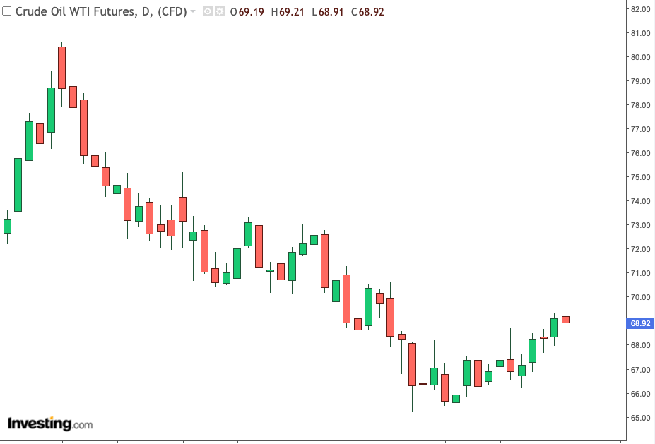• WTI crude is currently testing support at $69, a level that has held over the last three sessions. A break below $68.50 could open the door to further downside toward the next key support at $66.80.