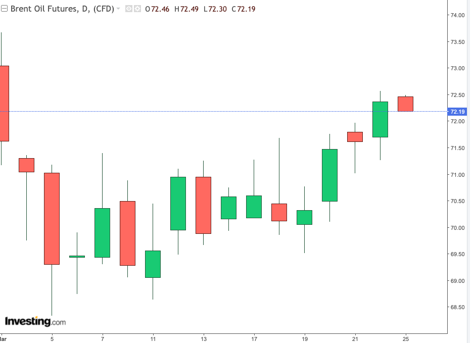 • Brent faces near-term resistance at $74.20, while strong support lies near $71.50.