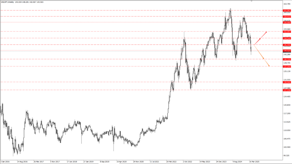 - If USD/JPY remains under pressure near 146.44, it may extend its decline, with support at 140.33 and 137.25.