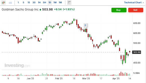 Goldman Sachs’ Q1 beat, announced yesterday, reinforces that investment banks are thriving amid the turmoil—trading activity is surging, even if long-term investment remains cautious.