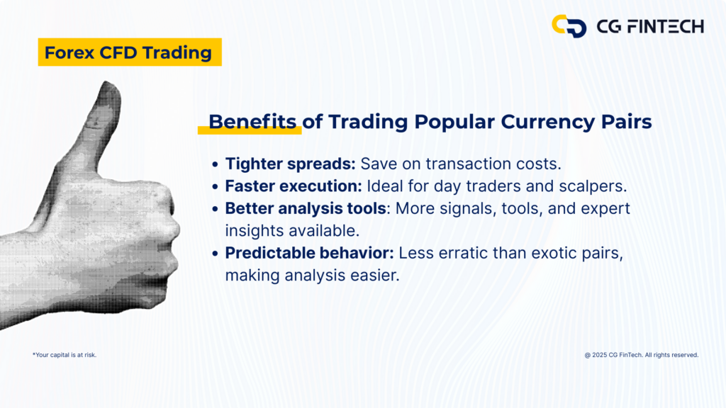 - Access to news and analysis: These pairs are heavily covered by analysts and brokers.