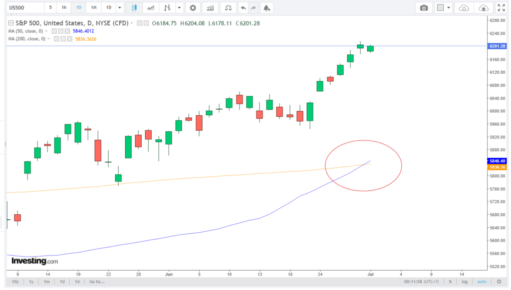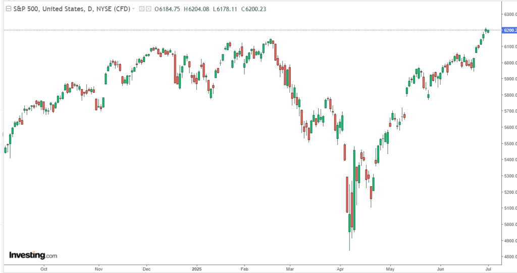 Technically, the S&P 500 remains well above its 50-day moving average (now at ~6,030), and the formation of a “golden cross” last week (50-DMA crossing above the 200-DMA) supports the case for medium-term bullish continuation.