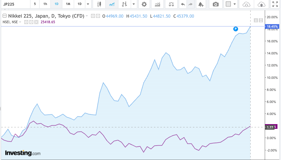 Asian markets opened higher on Thursday, helped by the Fed’s dovish tone and a favorable shift in investor sentiment. Japan’s Nikkei 225 climbed nearly 1 percent, driven by export optimism and currency tailwinds. In India, the Sensex jumped over 300 points and the Nifty 50 pushed past the 25,400 mark. Domestic reform momentum and positive signals from trade negotiations added to the bullish mood.