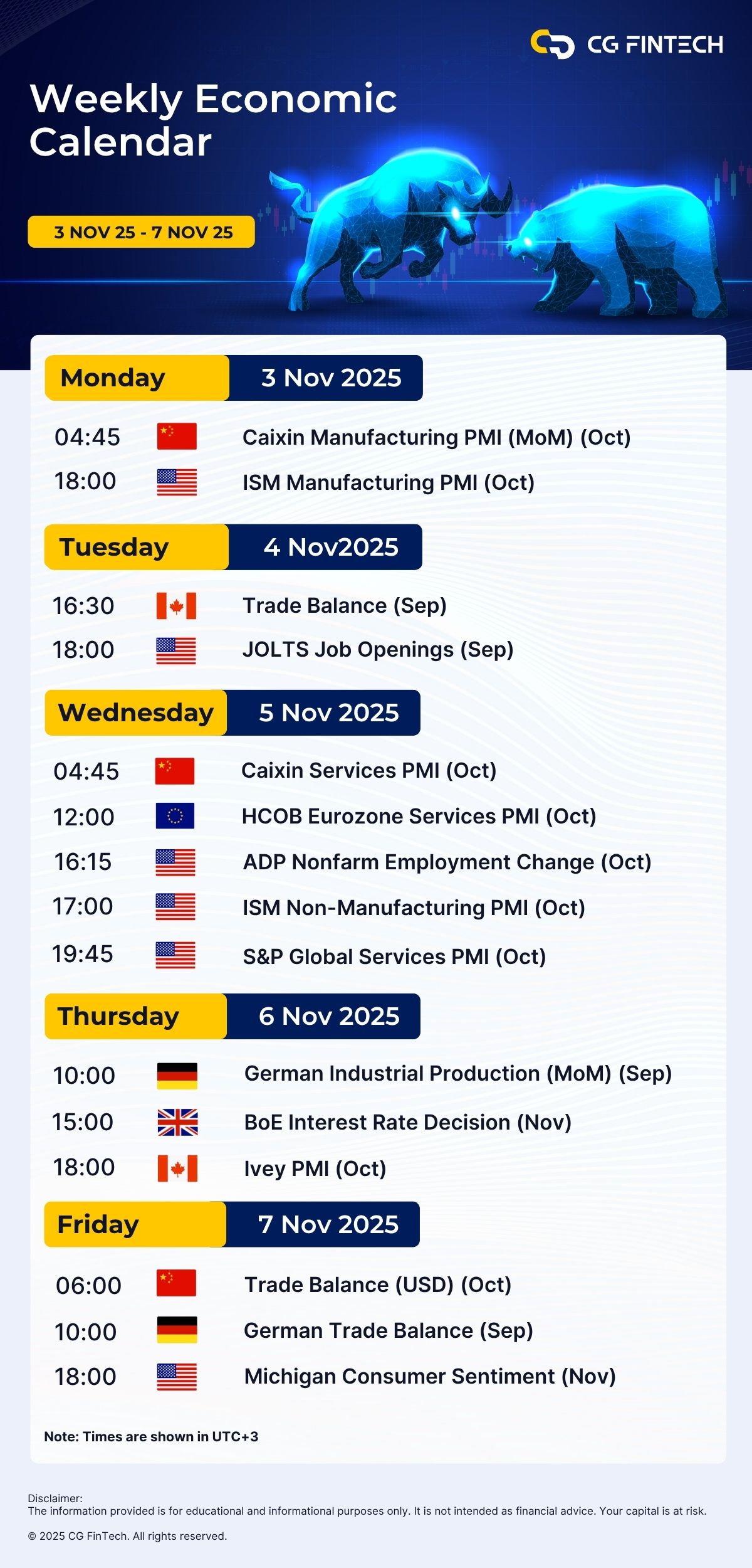 Weekly Economic Calendar | 3 November – 7 November 2025